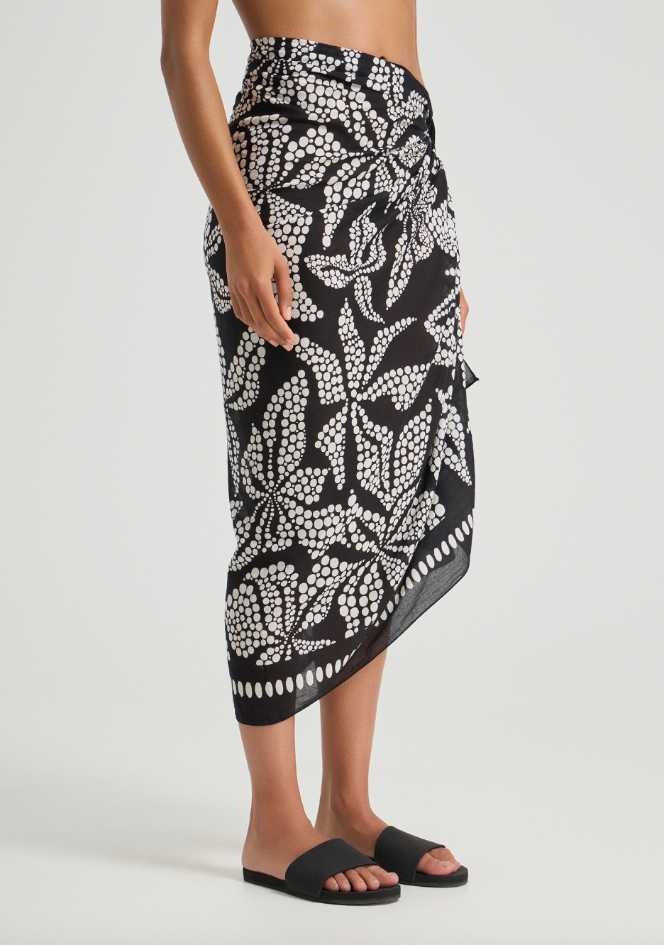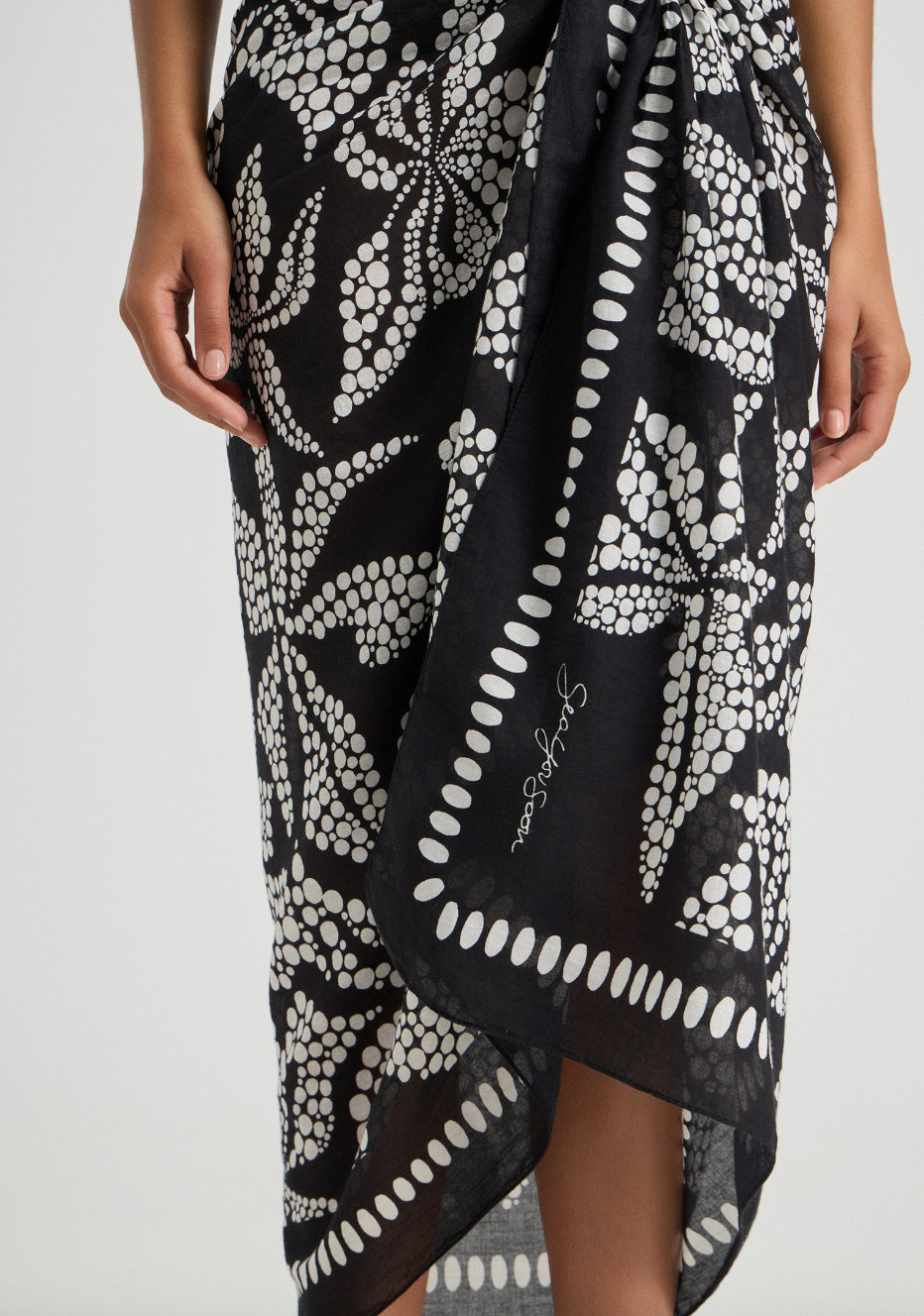 The Bloomora Pareo is a summer essential, crafted from ultra-soft cotton with an exclusive abstract flower print. Its oversized, rectangular shape offers endless styling possibilities, perfect for the beach, pool, or leisurely city