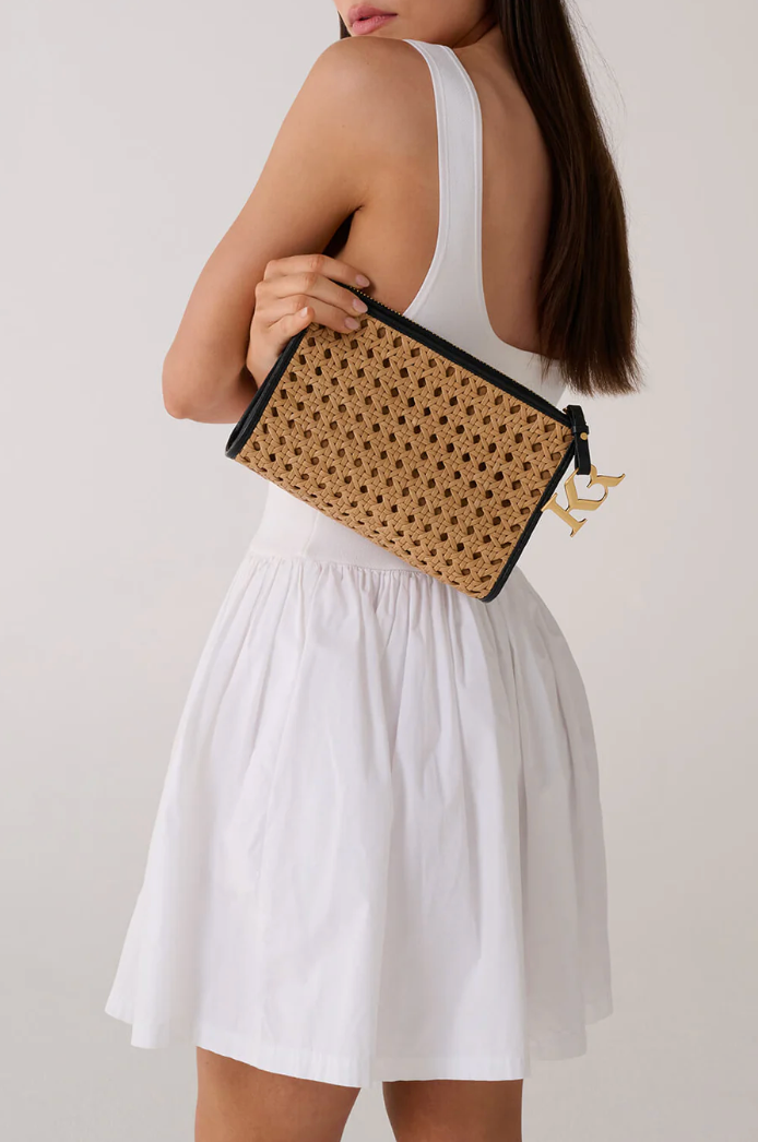 Whether you're heading into the city or out of town, the KR Pochette will lend any look an effortless elevation. Comfortably carrying your phone, touch-ups, sunglasses and keys, making it the perfect day-to-night bag for any occasion. Your KR holiday awaits.