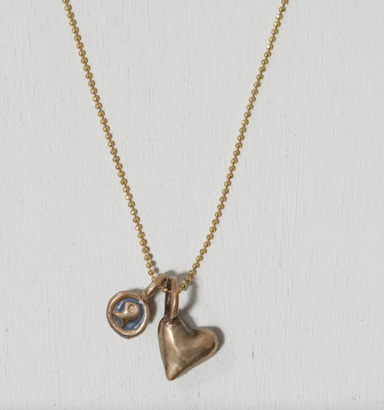 The absolutely adorable heart necklace from Pesci Che Volano, the Fishero Pendant showcases a sturdy bronze heart adorned with the Tonda Pesce Charm on a chain that's been gold plated (don't worry, it's nickel free!). This little beauty was lovingly crafted in Florence, Italy.