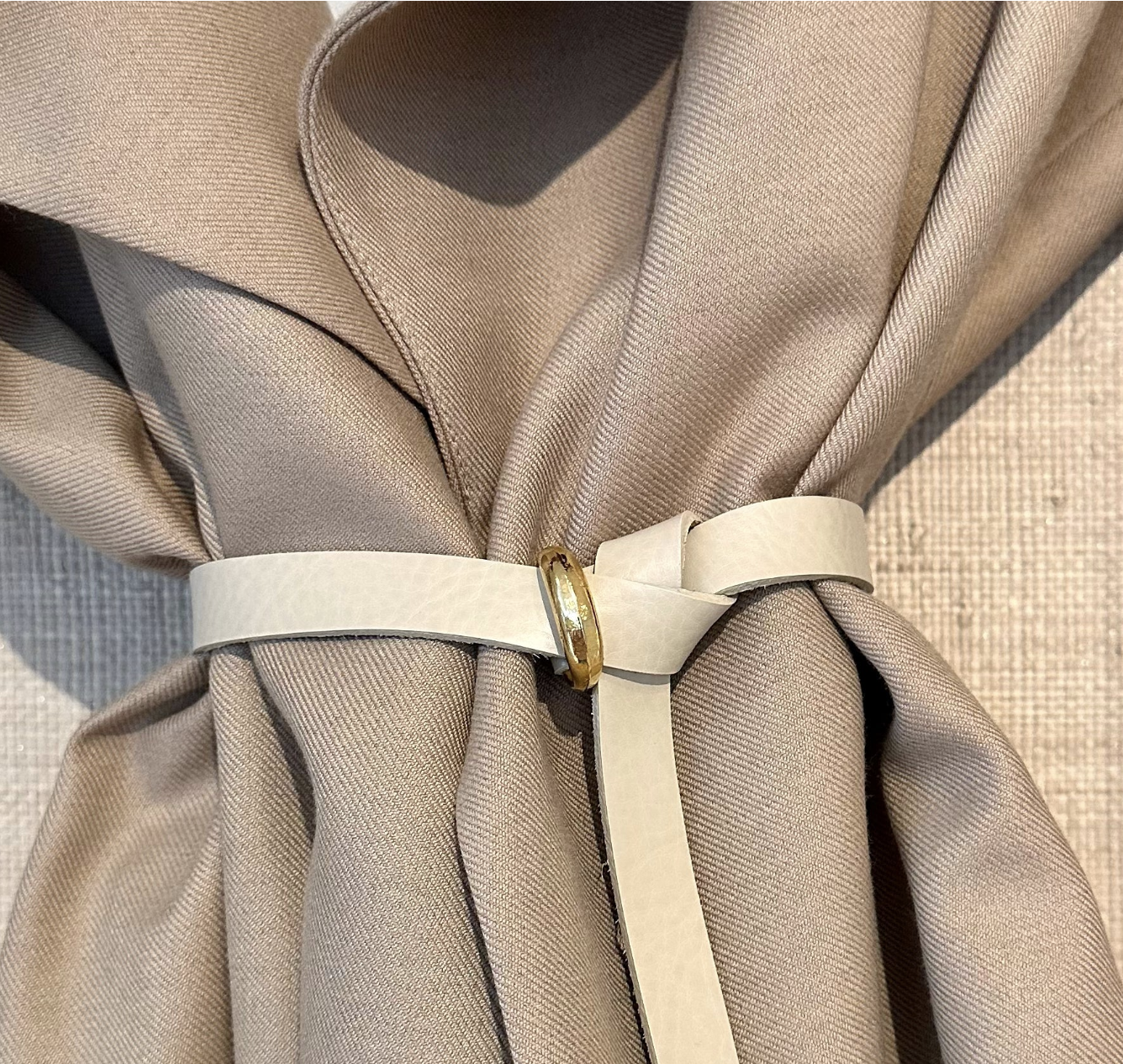 This Flatiron thread belt is sleek and minimal and is made from superb leather featuring sourced stunning high quality vintage Italian hardware. Handcrafted by our Melbourne artisan, these are very limited and will not be repeated. Fully adjustable slide through buckle.